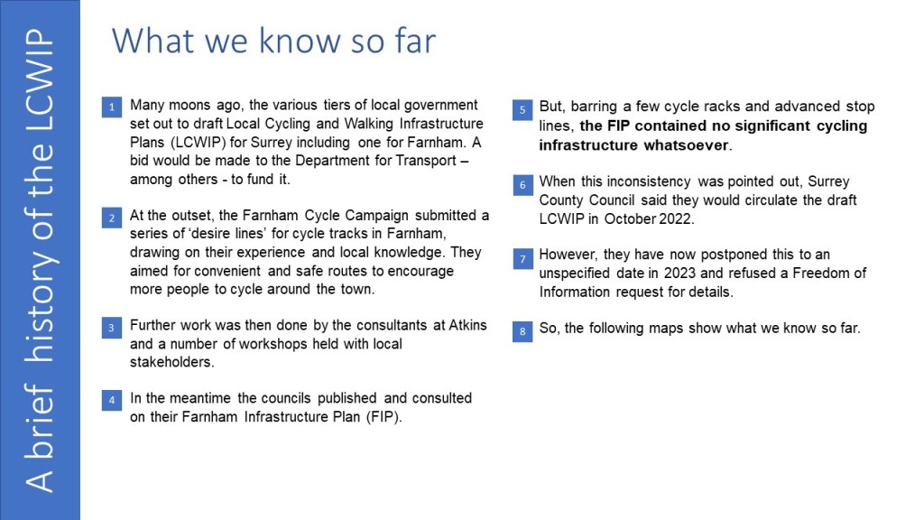When this inconsistency was pointed out, Surrey County Council said they would circulate the draft LCWIP in October 2022.